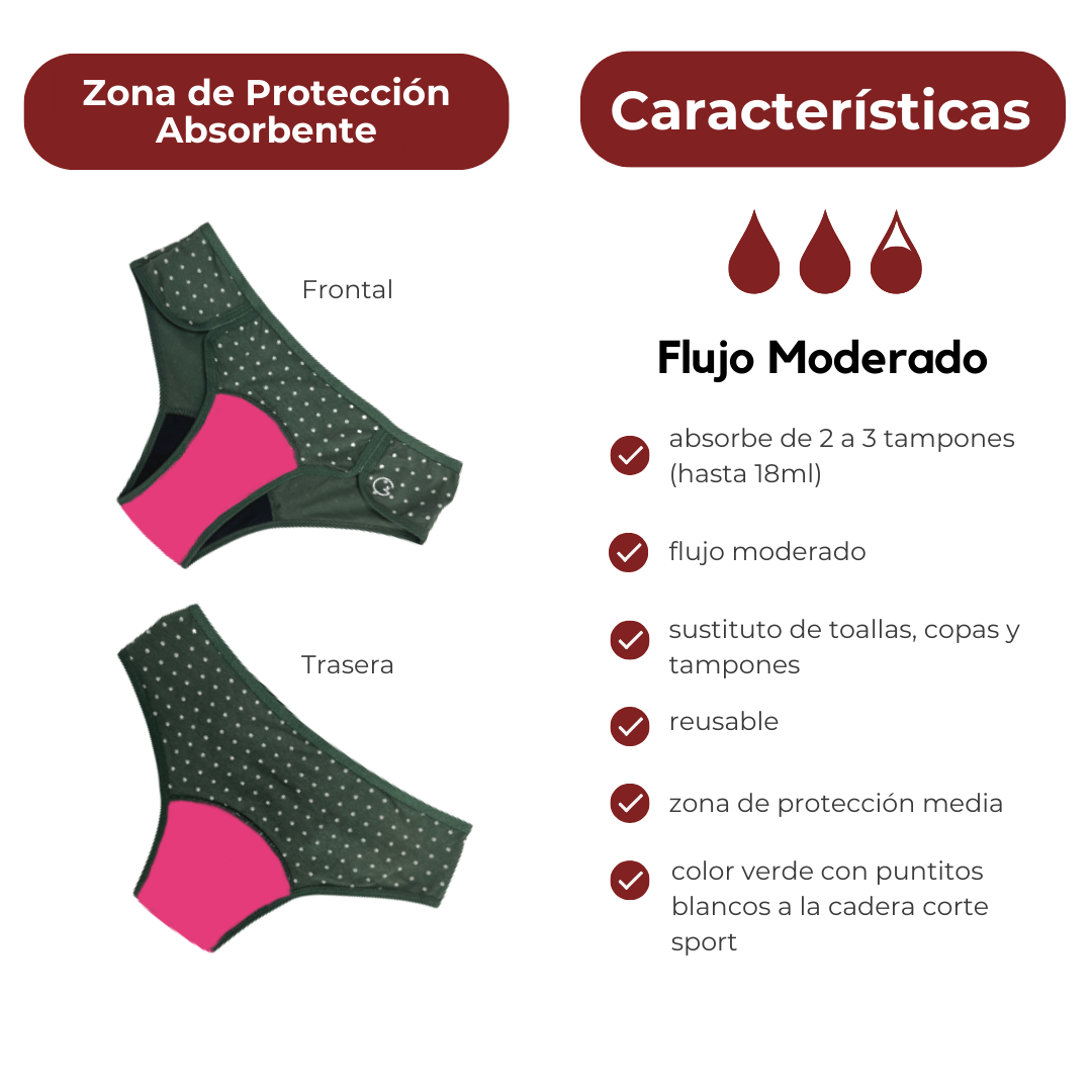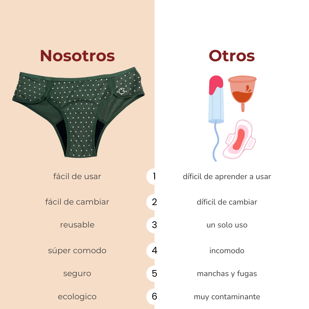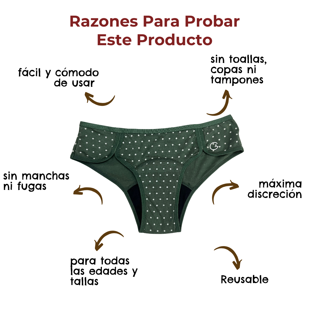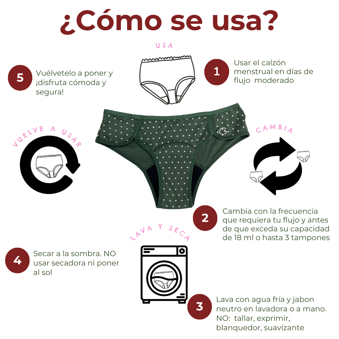 Cambia con la frecuencia que requiera tu flujo al momento de uso y antes que exceda su capacidad máxima de absorción. Sigue las instrucciones de uso, cambio, lavado, secado y vuelve a usar por años. Más detalle aquí