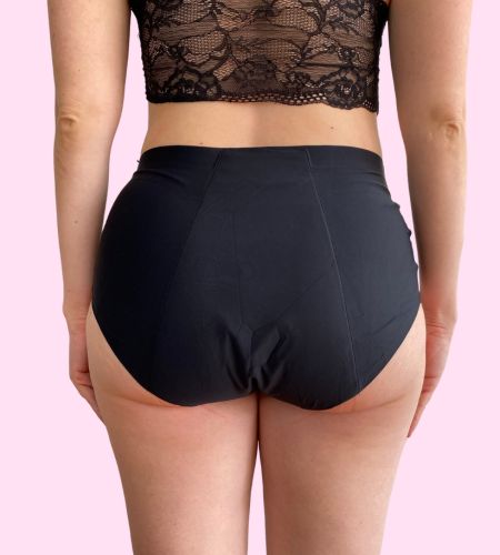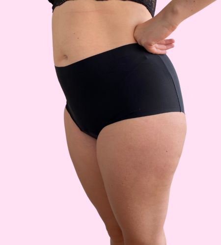 Mide tu Cadera en la parte más amplia de tus glúteos. Si tienes piernas anchas, glúteos prominentes o tiendes a inflamarte durante tu periodo, te recomendamos elegir una talla más arriba para tu comodidad