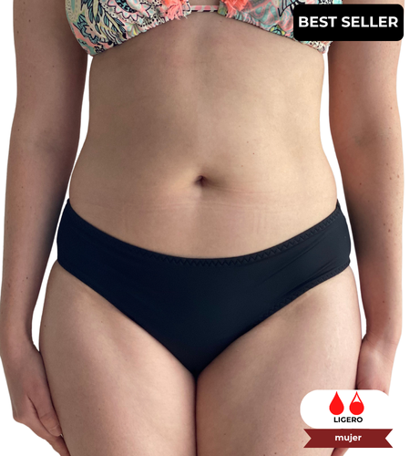 Con Sinope bikini negro a la cadera no te perderás más de un día de alberca o de playa. Absorbe el equivalente de hasta 2 tampones (10ml). Para manchados, secreción, períodos ligeros y fugas. En días de flujo ligero a moderado, puedes usarlo por sí solo. En días de flujo abundante o para mayor duración lo puedes utilizar con tú copa o tampón.